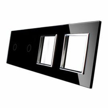 7022G-62 Czarna ramka szklana LIVOLO z miejscem do dwóch podwójnych włączników dotykowych i miejscem na gniazdo